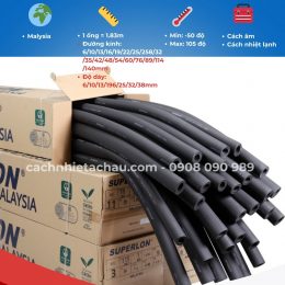 Cao su lưu hóa/ gen cách nhiệt Superlon Malaysia là sản phẩm cách nhiệt dạng ống đã định hình, dạng tấm phẳng chuẩn và dạng cuộn mà tất cả các sản phẩm này không có chất CFC, HCFC và O.D.P. được chế tạo từ chất dẻo nhẹ có tính đàn hồi cao sử dụng cho lĩnh vực cách nhiệt có nhiều ưu điểm như: